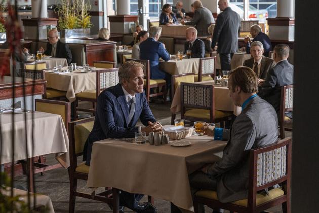 Saul is no longer just a name.  He’s becoming defined. When called into a lunch meeting with Howard, he’s put on the spot to distinguish the difference between Saul Goodman and Jimmy McGill as if he’s an analytical fan of his own show.  Saul proves surprisingly articulate on the spot, deeming himself as a life raft when you’re sold down the river and a friend to a friendless, among a multitude of colorful, rapid-fire summations.  Howard wonders whether Jimmy McGill could also live up to this sparky ideology and Saul deflects that it’s possible but Saul Goodman already does. It’s here where Howard detects the underlying sore spot of how the Jimmy McGill name and legacy has been tarnished from HHM entertaining Chuck’s resentments by refusing to hire Jimmy when he was barred or when he brought in the Sandpiper case.