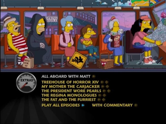 It’s true that The Simpsons Movie took the summer of 2007 by storm even in the marketing lead-up to the film’s release. Put a reference of the movie in the show and viewers are more than likely to recognize it. Maybe the overlap in the Venn diagram for people who watched the series and the movie are greater in ratio when compared to the overlap of those who watched the series and played the games. Even so, time has proven how beloved Hit & Run is and subjectivity aside, it’s as highly regarded in Simpsons’ fans circles as the movie, if not more. What’s great about The Simpsons is how in the span of 22 minutes, the historical, pop culture, or political references can range from super broad and well-known to the obscurest of obscure so whether the audience gets it or not shouldn’t be an issue. Now that the show is animated in HD, even the briefest visual easter egg can suffice. I’ve watched every episode to date and have yet to recall any Simpsons game (beyond Tapped Out) or even a Bongo comics reference. Commercial references have existed like nods to Simpsons T-shirts (Season 2’s “Dancin’ Homer”) or Butterfinger (season 14’s “Barting Over”) and even the “Do the Bartman” music video was referenced in season 9’s “Simpson Tide”. The closest a game came to being referenced was a season 15 DVD menu where the logo to Hit & Run can be found: